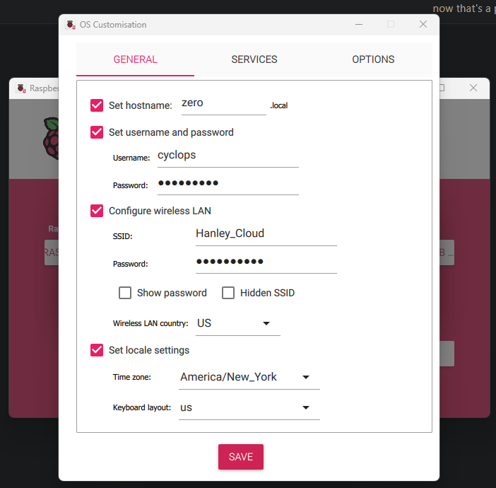 4. Select Next and you will be prompted with the option to edit OS settings. Select Edit and enter your network SSID and PSK, as well as your desired username and password.