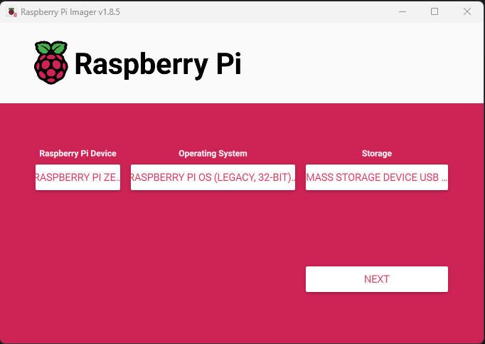 2. Insert your SD card into the reader and run the Raspberry Pi Imager (available here).